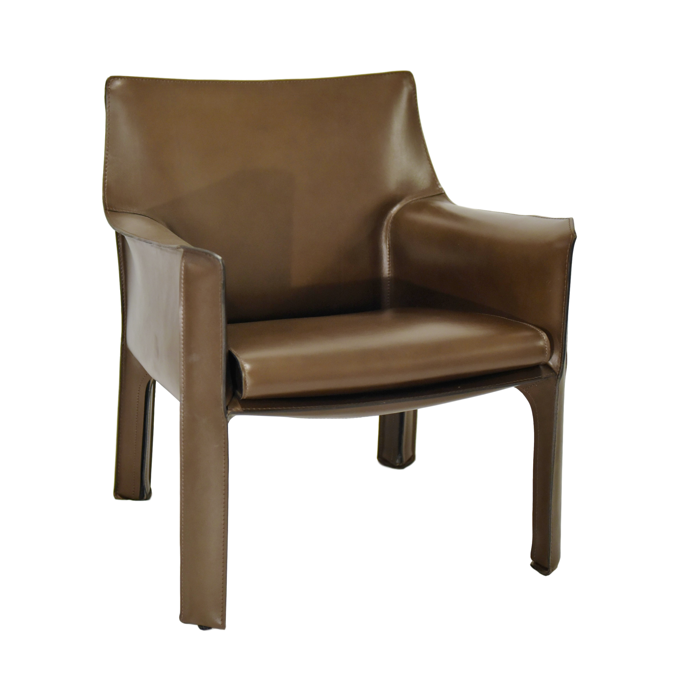 Die Cab Sessel ist eine Designikone, die technische Raffinesse mit stilistischer Klarheit verbindet. Das emaillierte Stahlgestell bildet das tragende Element, über das ein Lederbezug wie ein maßgeschneidertes Kleid gespannt und mit einem Reißverschluss verschlossen wird – ein charakteristisches Detail der Kollektion.