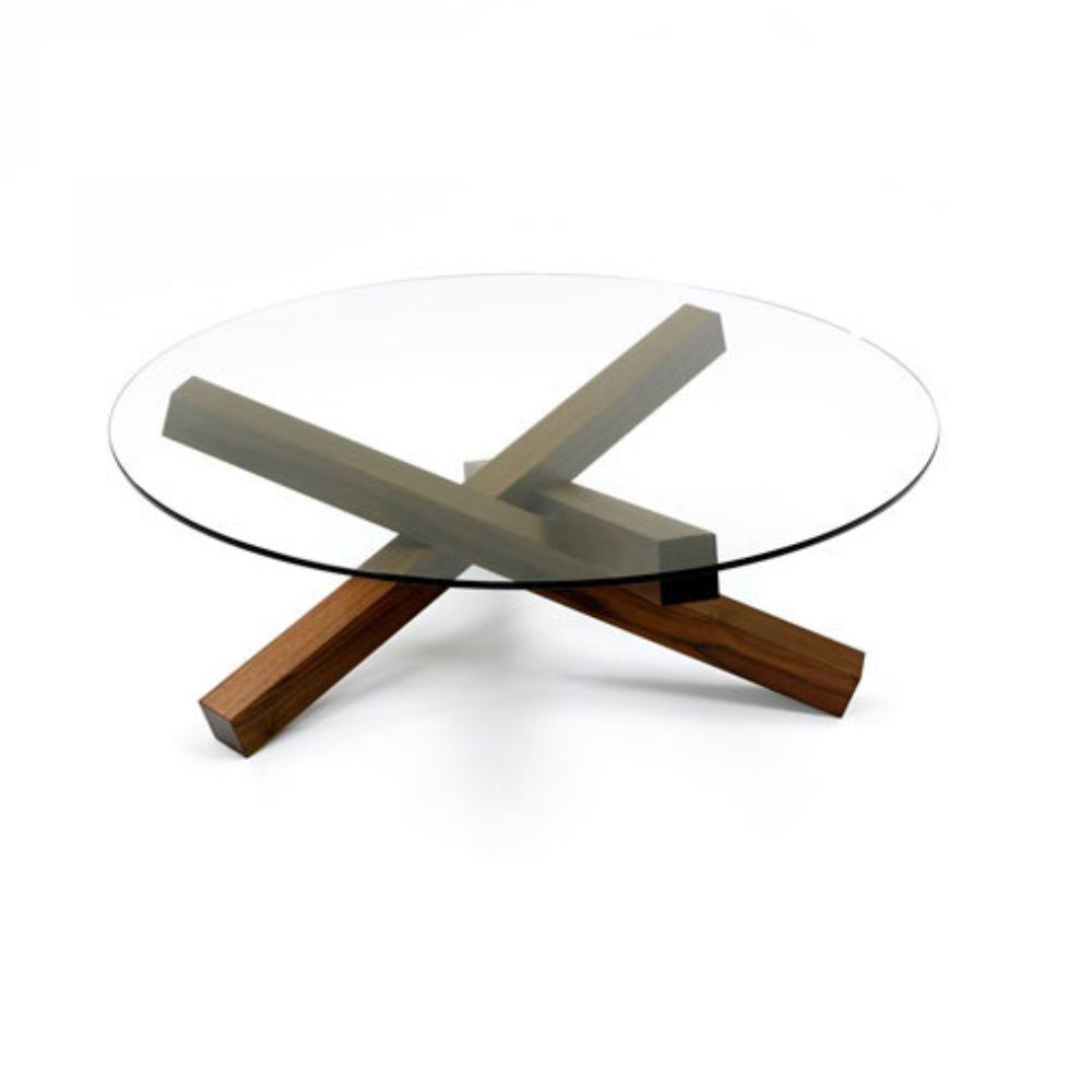 Campfire – am Salontisch mit der grossen, runden Glasplatte lässt sich ruhig lagern und gemütlich beisammen sein. Die drei übereinandergelegten, ineinander verkeilten Balken wecken leicht augenzwinkernd Erinnerungen an Lagerfeuerromantik. Die Konstruktion spricht von Bodenhaftung und Solidität. Dabei ist das Design durch und durch Ausdruck einer schlichten, zeitlos wirkenden Formensprache.