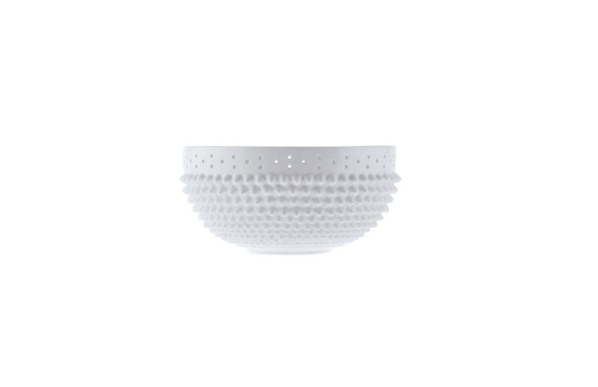 Mittelstück aus weißem Porzellan mit Perlendekor in Relief, entworfen vom Designer Borek Sipek. Eine elegante und raffinierte Kreation, die jeden Tisch oder Raum mit ihrer skulpturalen und zugleich feinen Ausstrahlung bereichert.