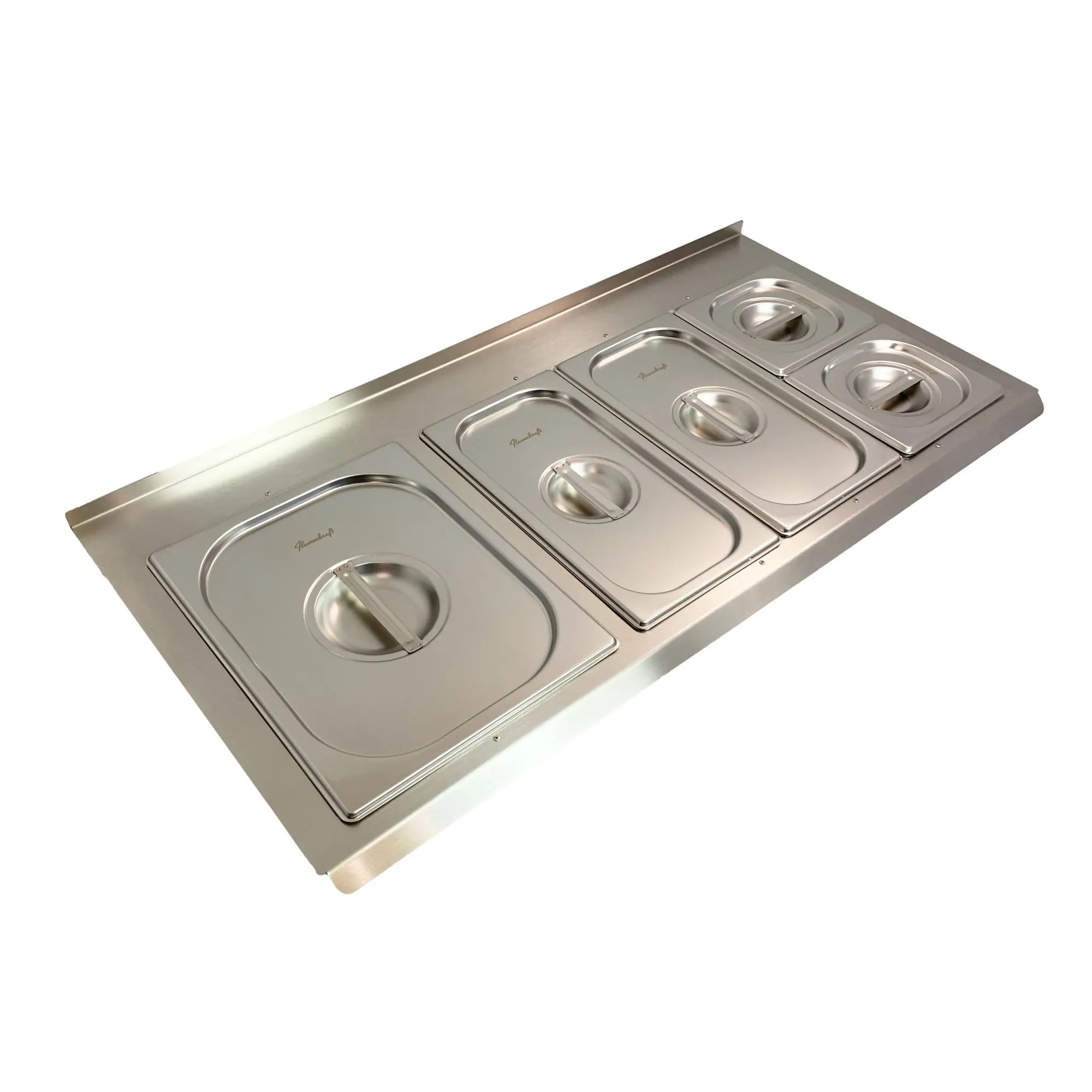 Passgenauer Schubladeneinsatz aus Edelstahl. Für den Einsatz wahlweise in beide Schubladen im Unterbau des Block M. Fünf extradicke Edelstahlbehälter (Gastronorm) inkl. Deckel bieten zusätzliche Möglichkeiten beim Aufbewahren von Zutaten und Grillgut. So können Lebensmittel im Vorfeld vorbereitet werden und dann geschützt vor Sonne, Regen und Insekten für den Einsatz am Grillpatz bereitgestellt werden. Bewegliche Stege ermöglichen die flexible Anordnung der Behälter.