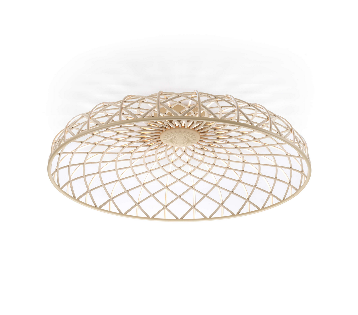 Der untere Rand der Kuppel ist mit einem Aluminiumring abgeschlossen, der das gesamte Netzwerk durch ein Klicksystem ohne Klebstoff fixiert – so lässt sich die Leuchte vollständig zerlegen und ist daher nachhaltig recycelbar und reparierbar.