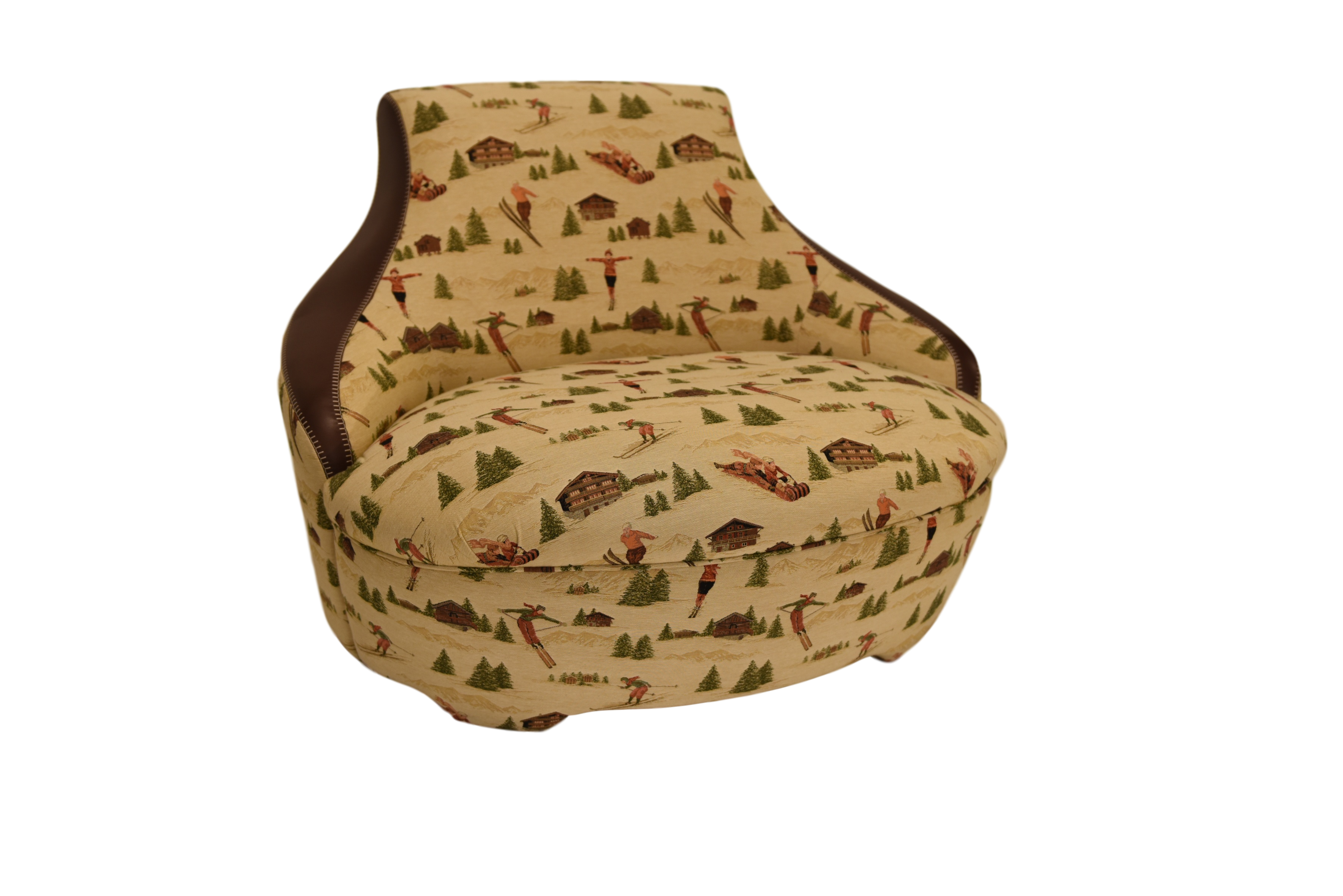 Gioconda und Giocondina sind zwei elegante Lounge-Sessel, erhältlich in zwei Größen. Die Sessel sind mit Stoff bezogen und verfügen über Lederdetails, die für einen edlen Kontrast sorgen.