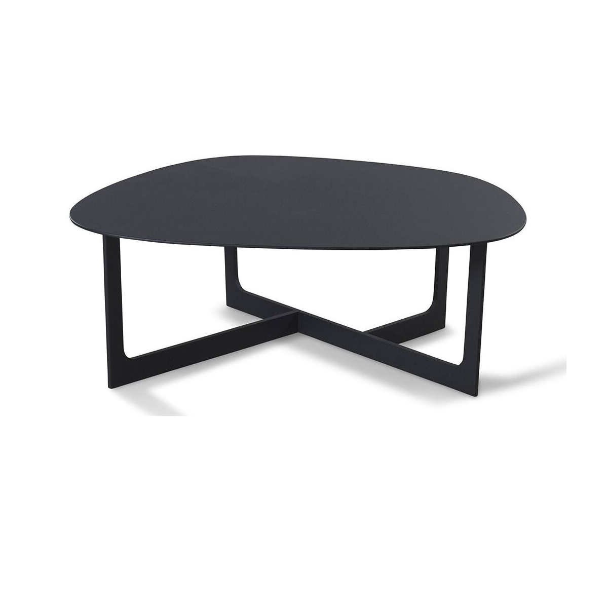 Die sanft geschwungene Tischplatte verleiht der ansonsten reduzierten Form eine grafische Leichtigkeit, während unterschiedliche Größen und Höhen flexible Einsatzmöglichkeiten schaffen.
