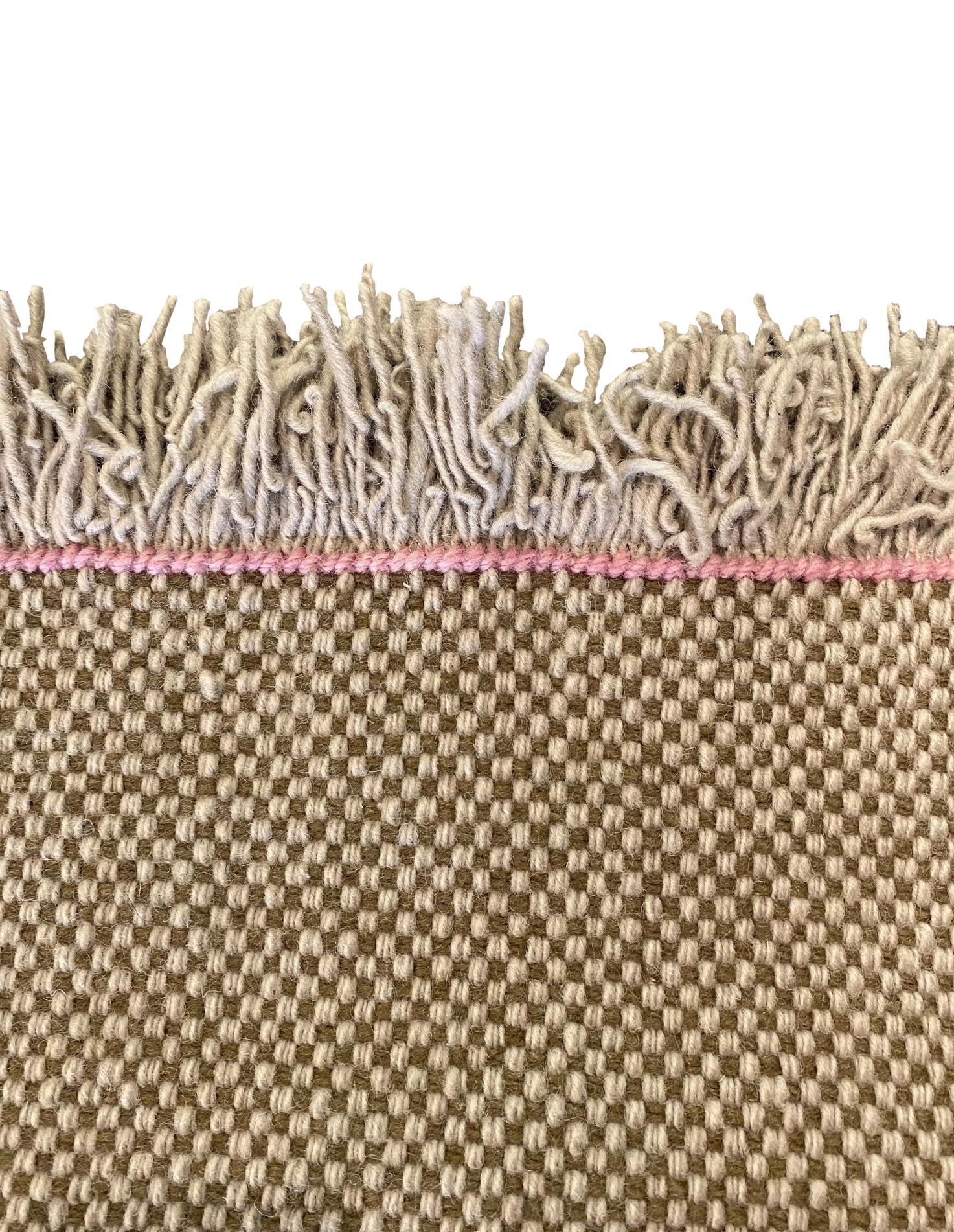 „Das völlig schlichte, flach gewebte Panamagebinde ist das archetypische Muster der Webkunst“, sagt Hella Jongerius. In dieser Hinsicht lässt sich das Design auf Hallingdal zurückführen, einen legendären Möbelbezugsstoff aus Kvadrats Archiven, der ebenfalls eine Panamabindung hat und für seine breite Zweiton-Farbpalette bekannt ist. Die unterschiedlichen Garnstärken und kontrastierenden Farben geben dem Teppich eine attraktive Unregelmäßigkeit.