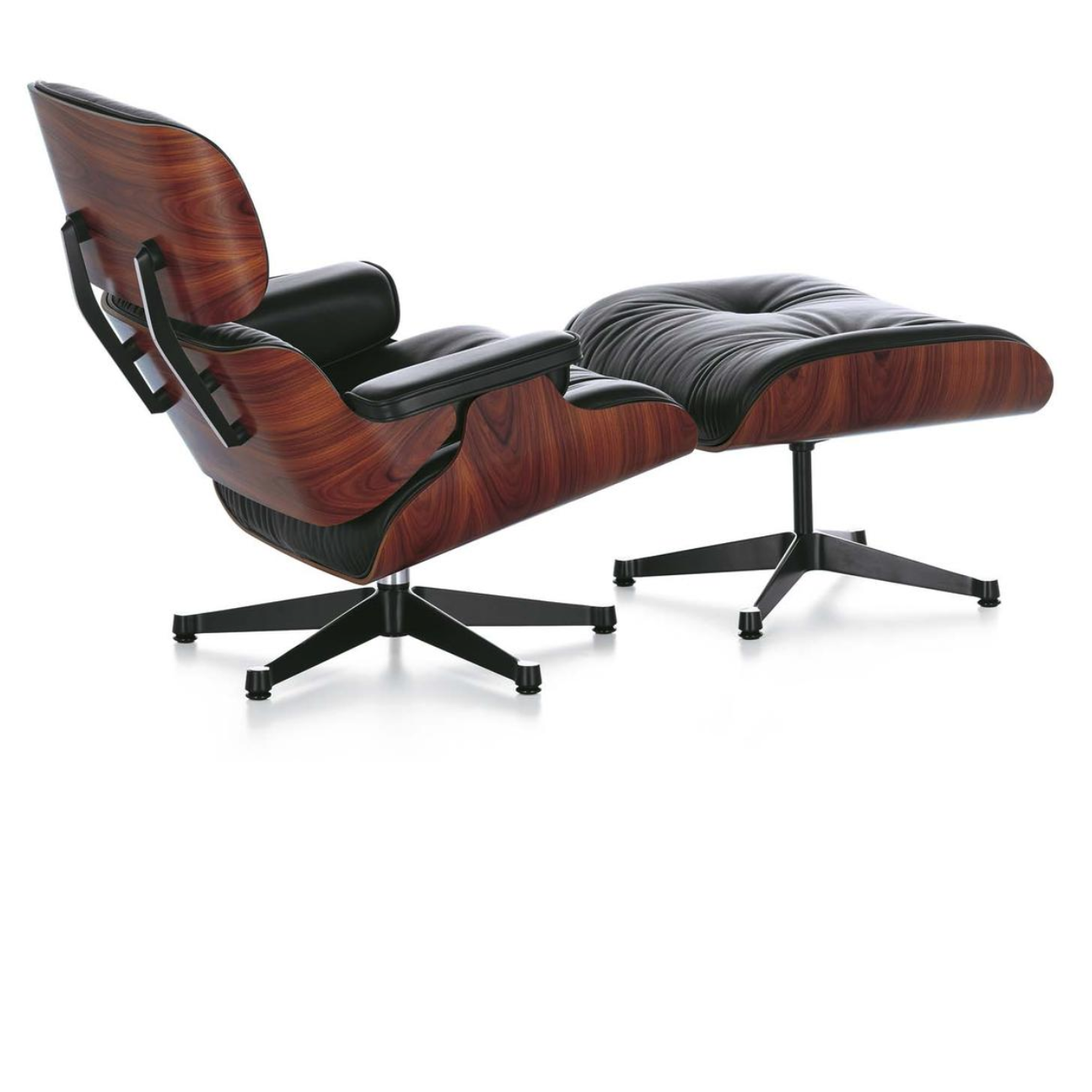 Vitra bietet den Lounge Chair heute in zwei Größen an: mit klassischen Maßen oder in einer größeren Variante. Verschiedene Kombinationen aus Lederbezügen, Holzschalen und Untergestellen stehen zur Auswahl, ergänzt durch eine White Edition und eine Black Edition mit passenden Details.
