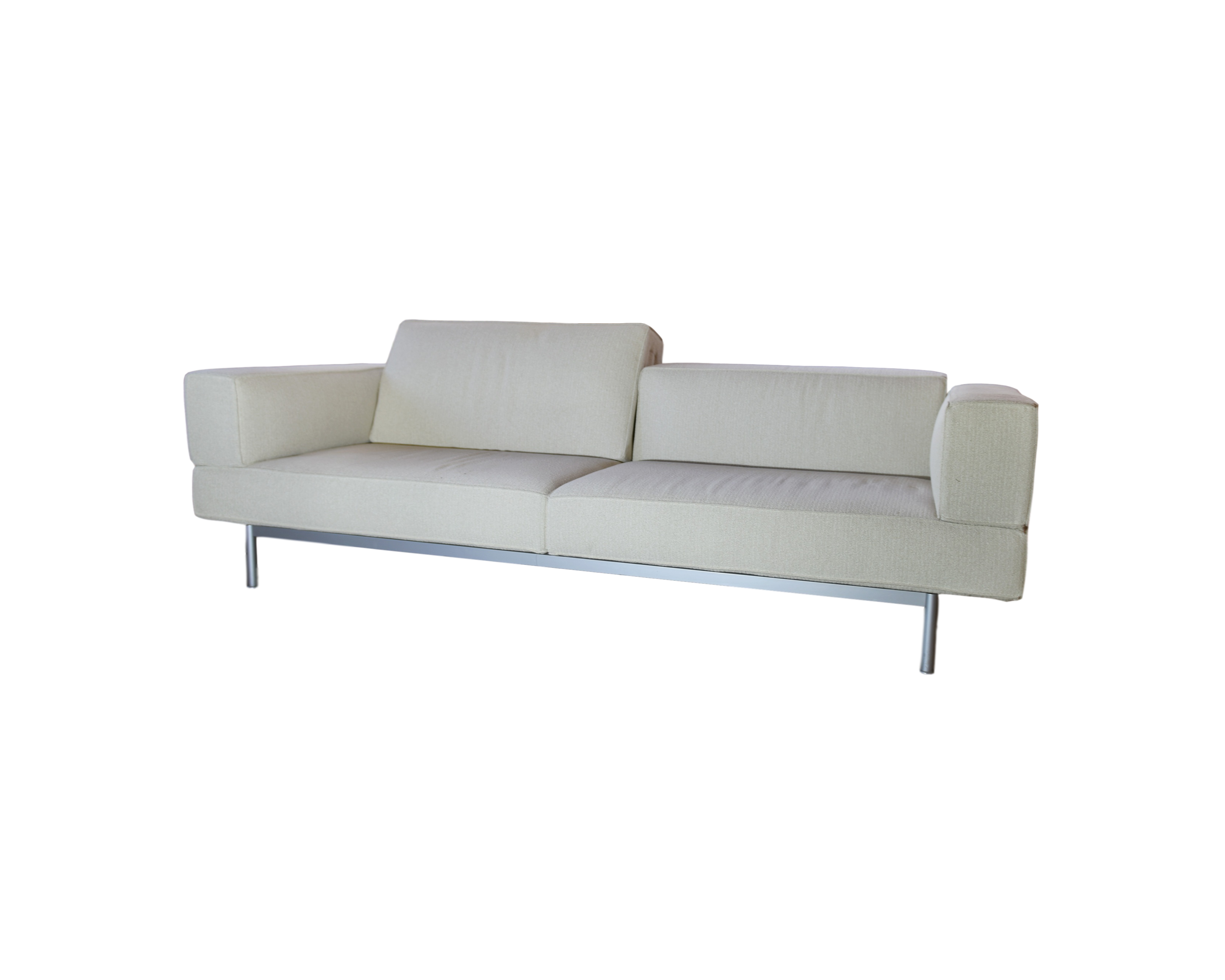 System von Sitzelementen bestehend aus Sesseln und Sofas. Der Sessel ist drehbar. Die Sofas,lieferbar in drei Breiten, erm