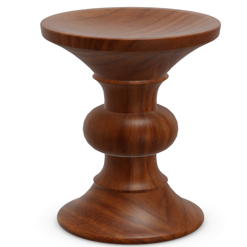 Ursprünglich für die Einrichtung dreier Lobbys im Rockefeller Center in New York entworfen, sind die Stools von Charles und Ray Eames die passende Ergänzung zu vielen Sesseln und Sofas. Die aus massivem Nussbaumholz gedrechselten Hocker können auch als Beistelltischchen verwendet werden.